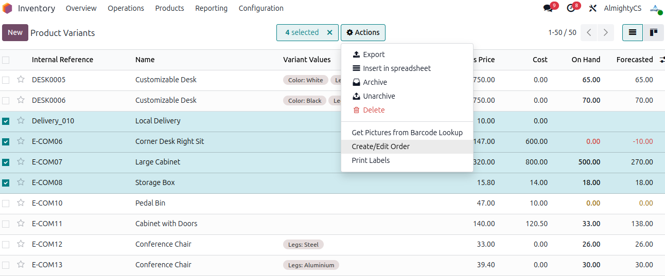 - Select multiple products from list view.