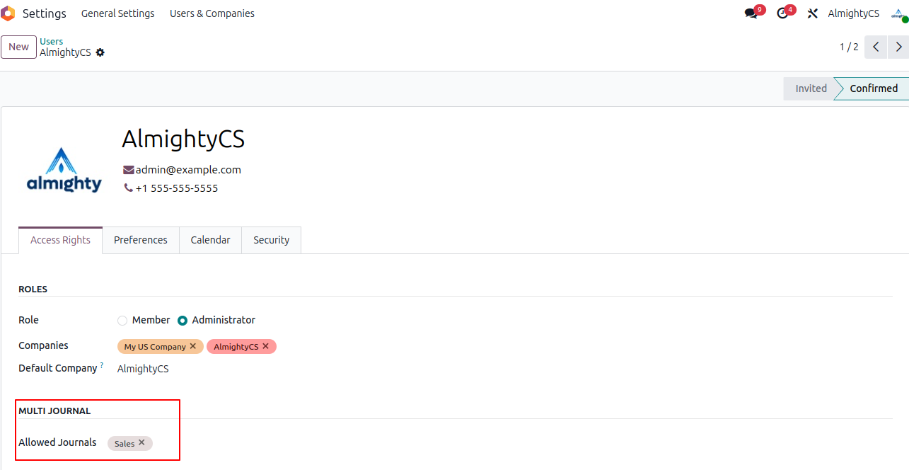 Odoo User Journal Restriction App helps to Put Access Restrictions for Journals Which Can be Used to Put Restrictions On Journal Entry, Journal Item, Customer Invoice and Vendor Bills. This App helps to Add Access Users On Journal Configuration and Only Allows Configured Users to Only have Access to that Journal and Create Journal Entry/Item, Invoice and Bills for that Journal.