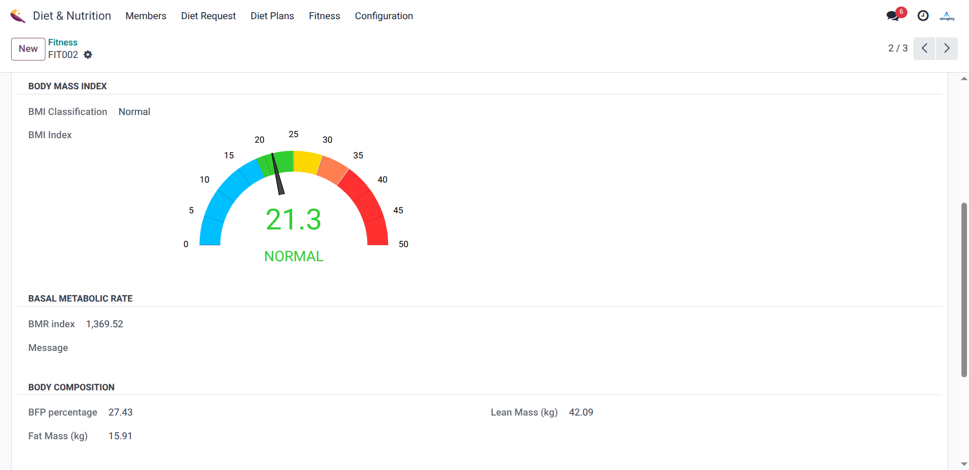 **Fitness Metrics Tracking:** Monitor key fitness details such as BMI (Body Mass Index), BMR (Basal Metabolic Rate), and Body Fat percentage to provide a holistic view of a member's health.