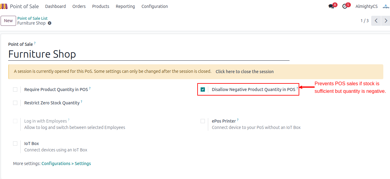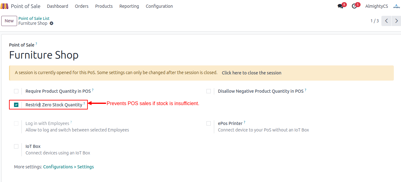 - Configurable option for not allowing stock Insufficient in pos shop.