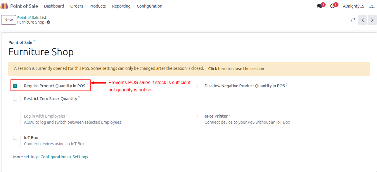 Prevents POS sales if stock is sufficient but quantity is not set.