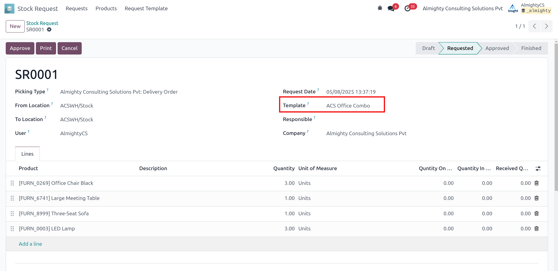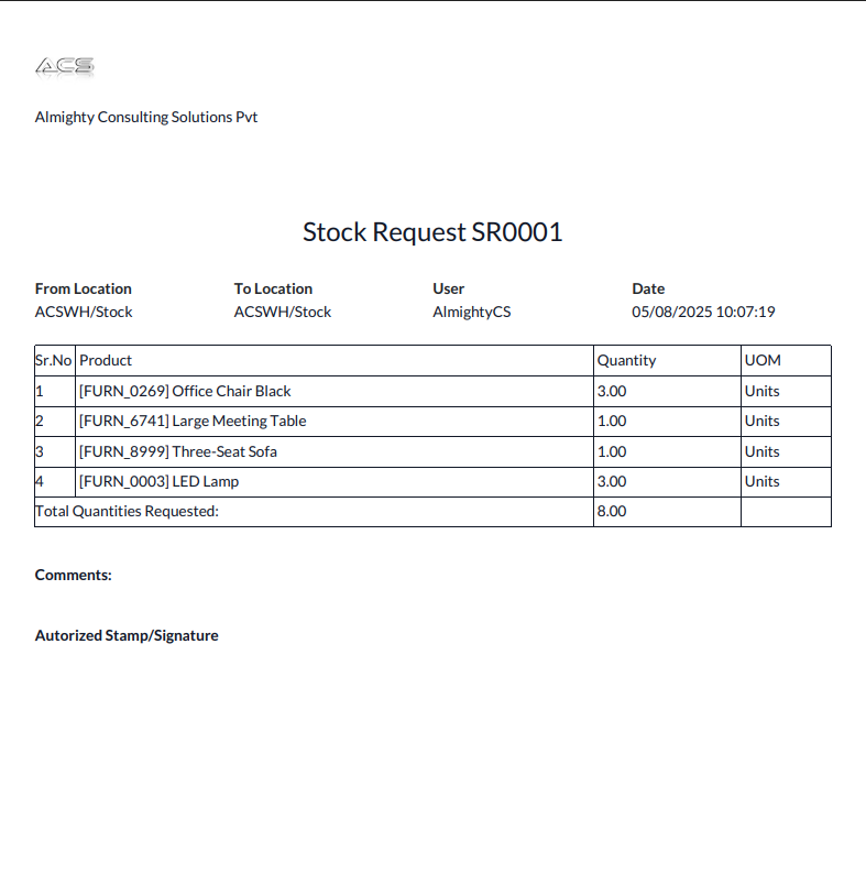 This module is designed to streamline and automate the process of managing stock request within your warehouse or organization.It allows users to create, approve, and track stock requests easily, making it simple to request and manage stock movements from one location to another. This system integrates seamlessly with Odoo's inventory management, ensuring that all stock activities are tracked and monitored in real-time.