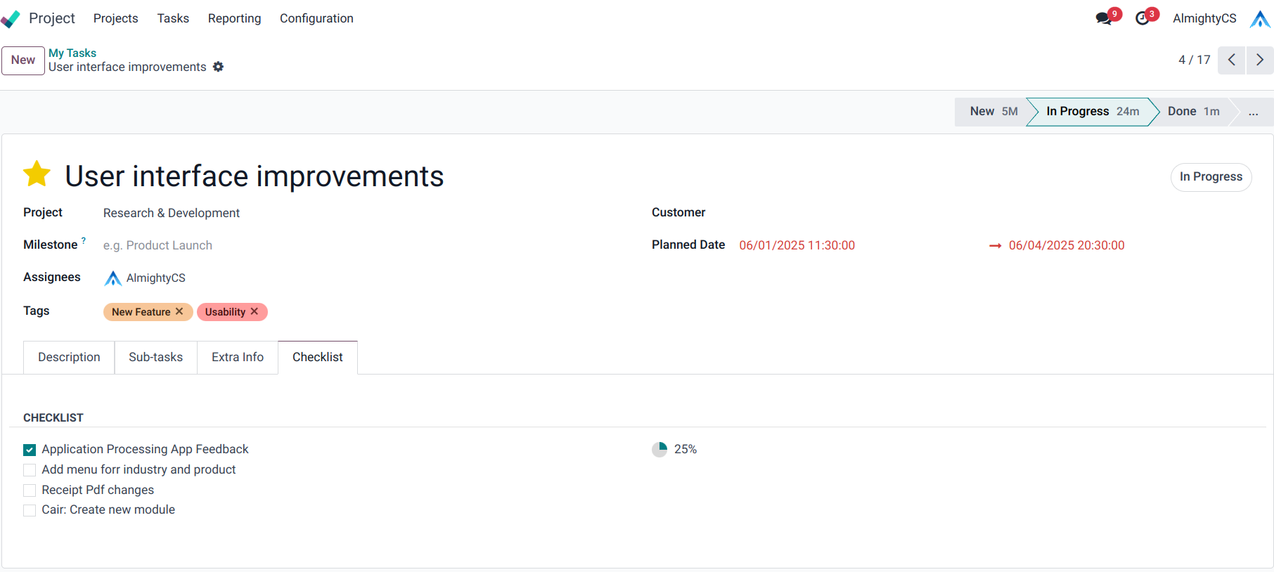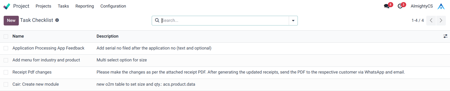 Using this application we can maintain full checklist for the project tasks which can be configured based on requirement.